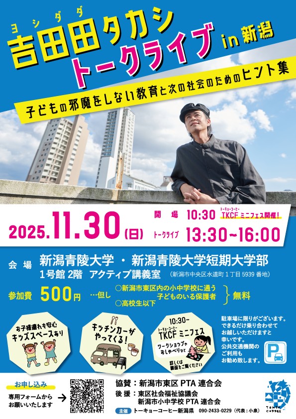 参加費 500円(高校生以下、及び新潟市東区内の小中学校保護者は無料)