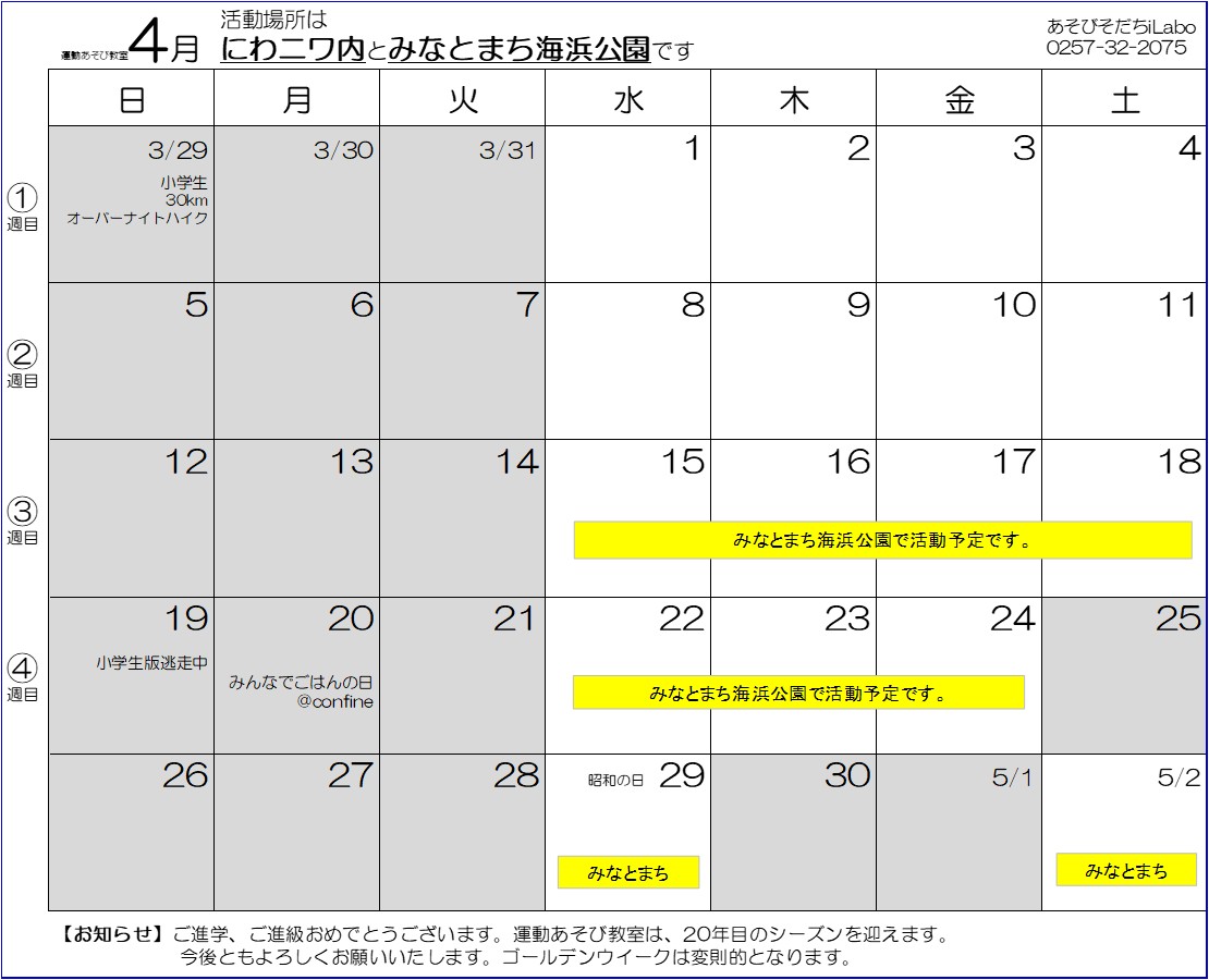2026年4月の活動カレンダー